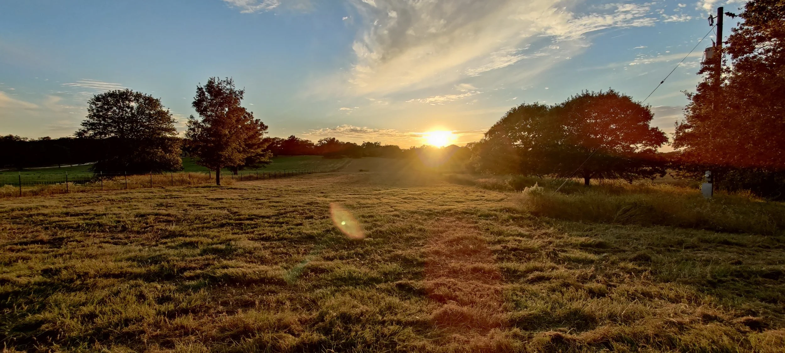 Spring paints the edges first. Butterflies drift like confetti. Bees hum the fence line. Wildflowers test the old bare spots and, to our surprise, win. Summer presses hard — it always does — but one good rain and the pasture flips from brown to green overnight. The land is learning to drink again.